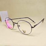These glasses have a lightweight metal frame with a round shape. The color is black with a soft blue outline, giving a clean and modern look. They are comfortable to wear all day because of the adjustable nose pads and thin arms. Perfect for daily use, studying, or office work.